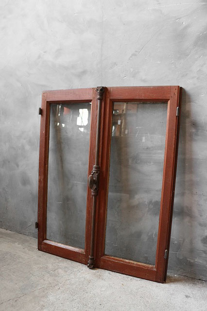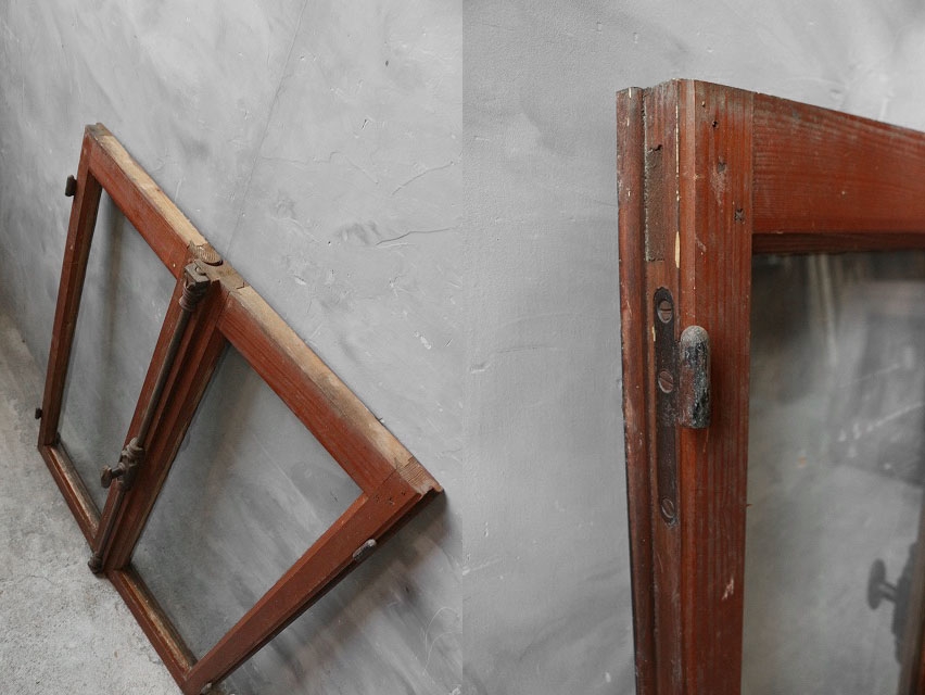 フランスで買い付けましたアンティークのガラス窓枠です。長い年月を経たアンティークならではの木枠やペイントの風合いがとてもいい雰囲気です。実際にご使用いただくにはある程度のメンテナンスは必要ですがしっかりとしたつくりで問題ないレベルかと思います。グレモン錠も多少固くなっております。状態ですが、経年による木質・塗装劣化、錆等の金属特有の劣化、小傷や擦れ、汚れ、木かけや木割れ、歪み、ガラス留め劣化(一部パテ止め加工)等といった使用感はありますが使用に差し支えがでるような目立つダメージもなく問題ない状態かと思います。ただあくまでアンティークですのでご理解いただける方のご購入をよろしくお願いします。