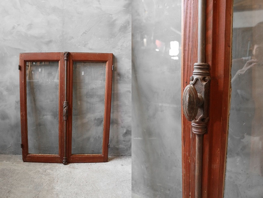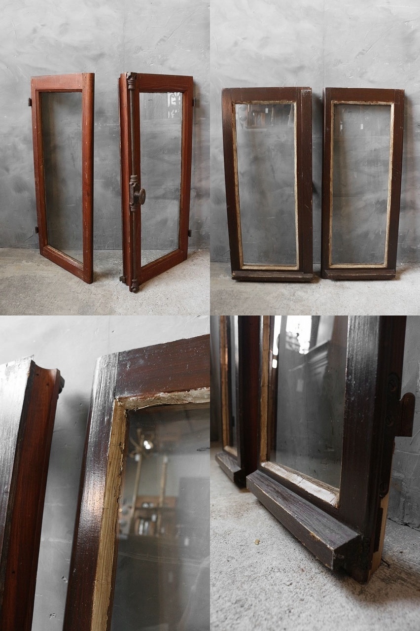 アンティーク ガラス窓枠 2枚セット B [ft2-657]