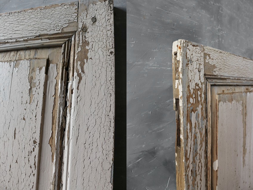 フランスで買い付けましたアンティークのウッドドアです。年月を経た風合いが非常におしゃれで良い雰囲気があります。実際にご使用いただくにはある程度のメンテナンスは必要ですが問題ないレベルかと思います。状態ですが、経年による木質・金属特有の劣化、塗装の剥がれ、小傷や擦れ、木欠けや木割れ、汚れ、歪み等といった使用感はありますが雰囲気を損ねるような目立つダメージもなく問題ない状態かと思います。ただあくまでアンティークになりますのでご理解いただける方のご購入をお願いします。